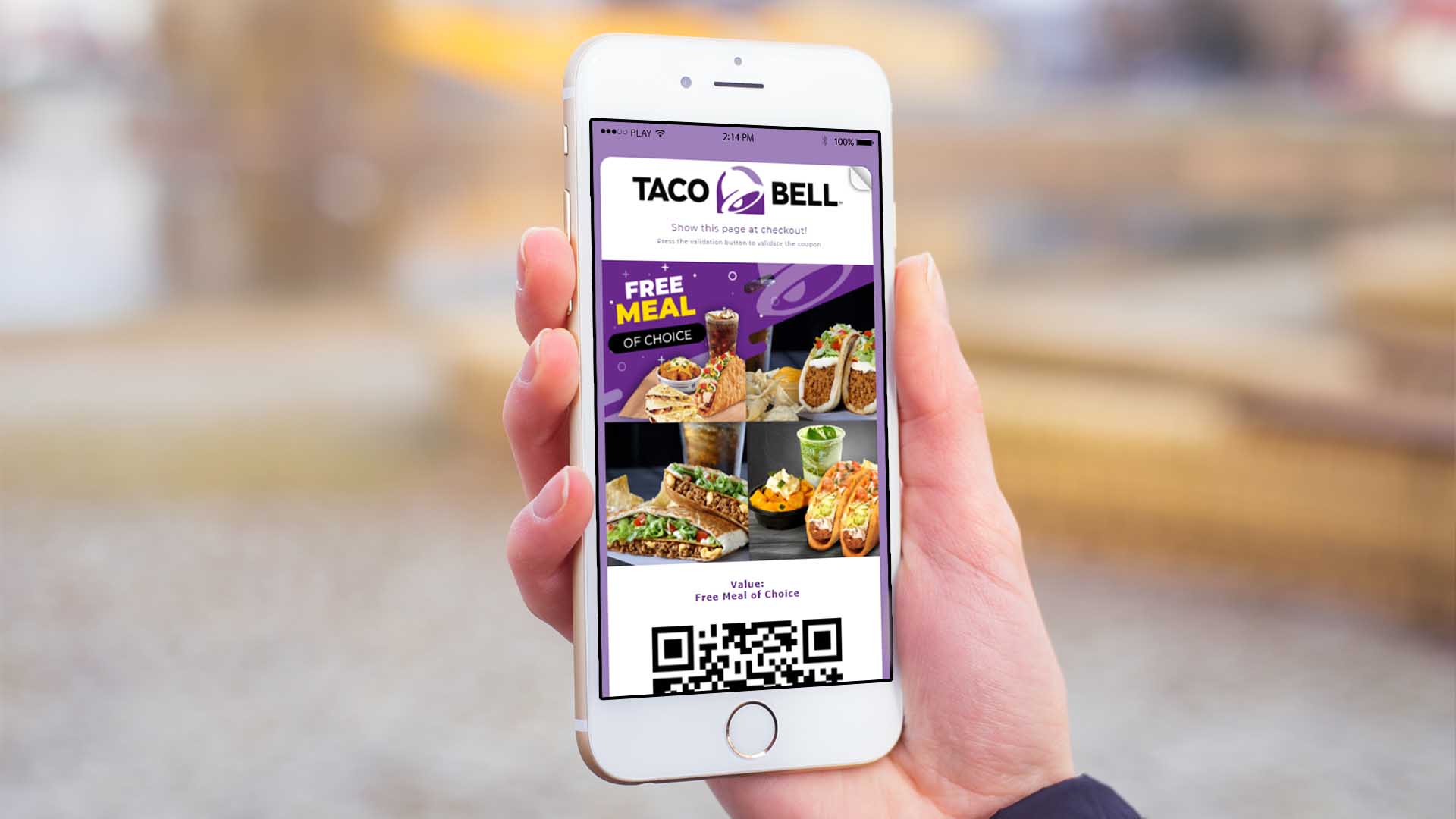 Taco Bell wilde klantgegevens verzamelen en de loyaliteit van haar klanten vergroten. Een loyaliteitsprogramma met couponbeloningen was hiervoor een perfecte oplossing. Mensen konden alleen een beloning krijgen als ze meerdere keren het restaurant bezochten.