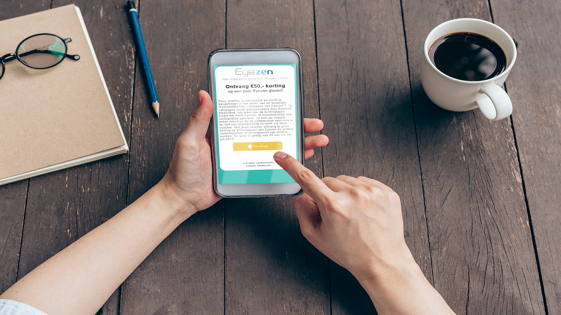 Als wereldleider in oftalmologische optiek en belangrijke speler op het gebied van visuele gezondheid, biedt de Essilor Group oplossingen voor het corrigeren en beschermen van de visuele gezondheid van de 7,4 miljard mensen in de wereld. Essilor Nederland was in staat om de promotiecampagne te implementeren in hun website. De coupon kon worden ingewisseld in één van de 335 deelnemende vestigingen.