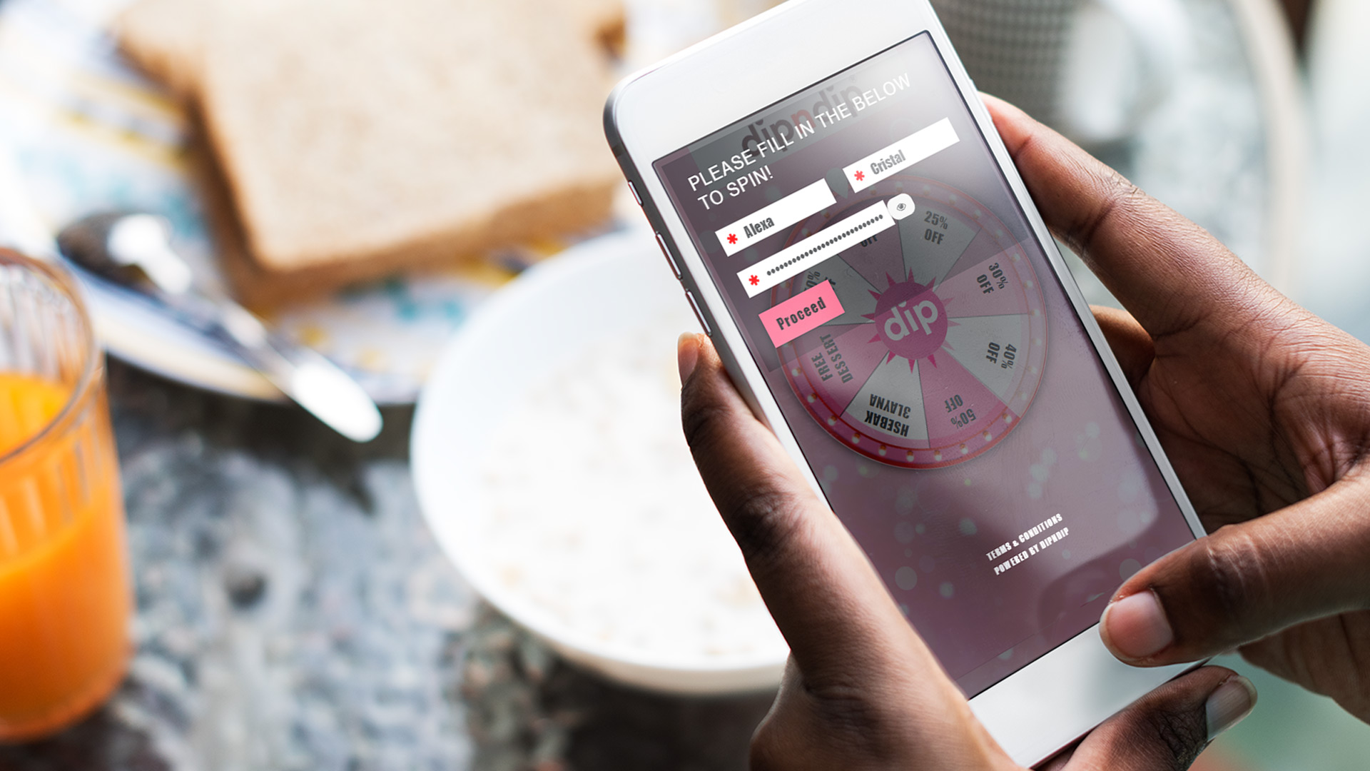 Zo was DipnDip in staat om een e-mail database op te bouwen van bezoekers die zich in hun restaurant bevonden. Wanneer de bezoekers hun persoonlijke gegevens hebben ingevuld, kunnen ze achter het spin wheel spelen Ook zijn klanten eerder geneigd om hun persoonlijke gegevens te geven als ze de mogelijkheid hebben om een prijs te winnen.