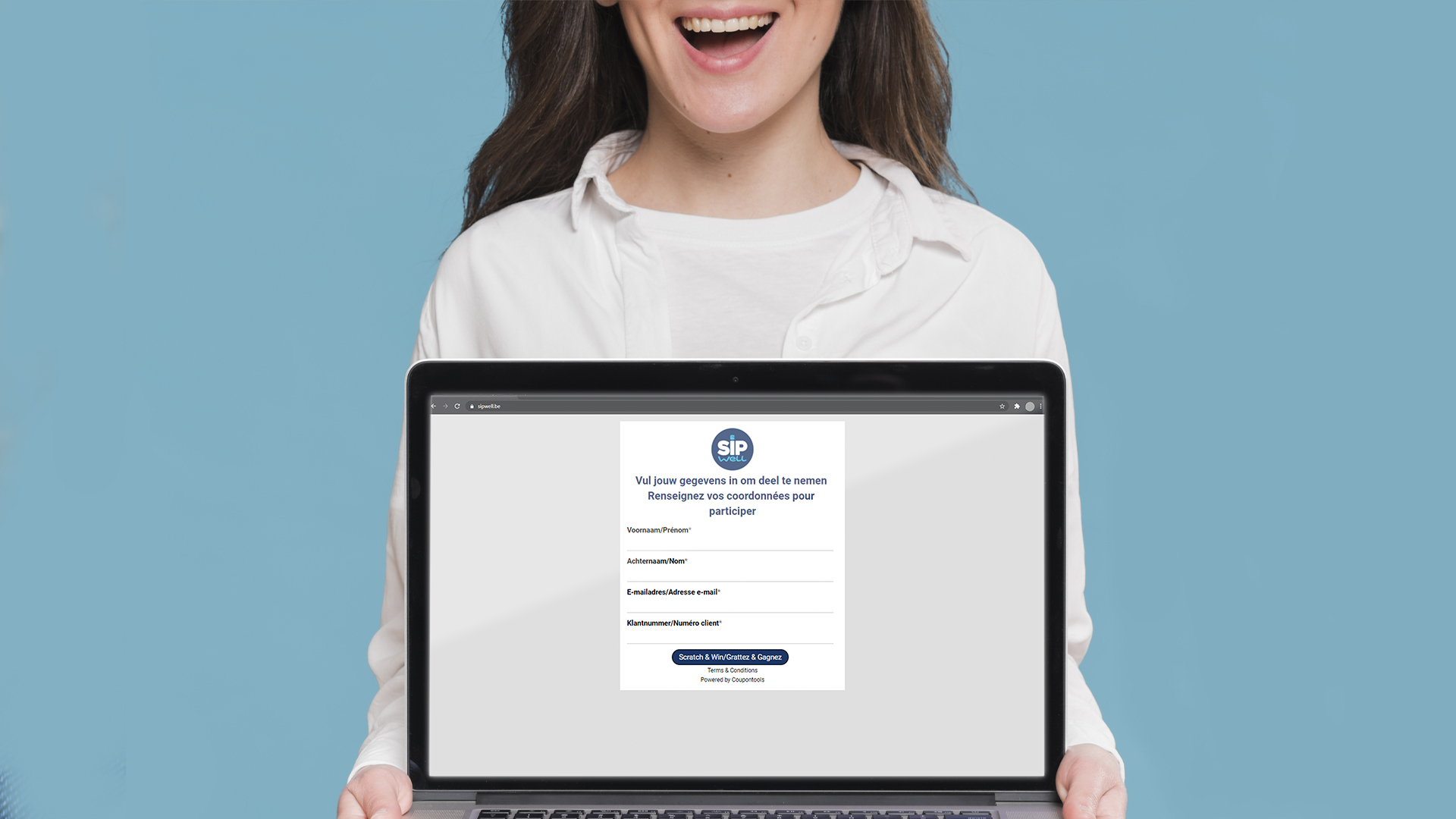 Since unique customer data is already requested via the landing page, traditional validation is not necessary. It is one of the significant advantages of the landing page distribution method. Before one can use the coupon, the landing page already checks if it concerns an existing and unique customer of yours. All entered customer data is captured in the back-end. Based on this data, SipWell contacts the winners and eventually reward them.