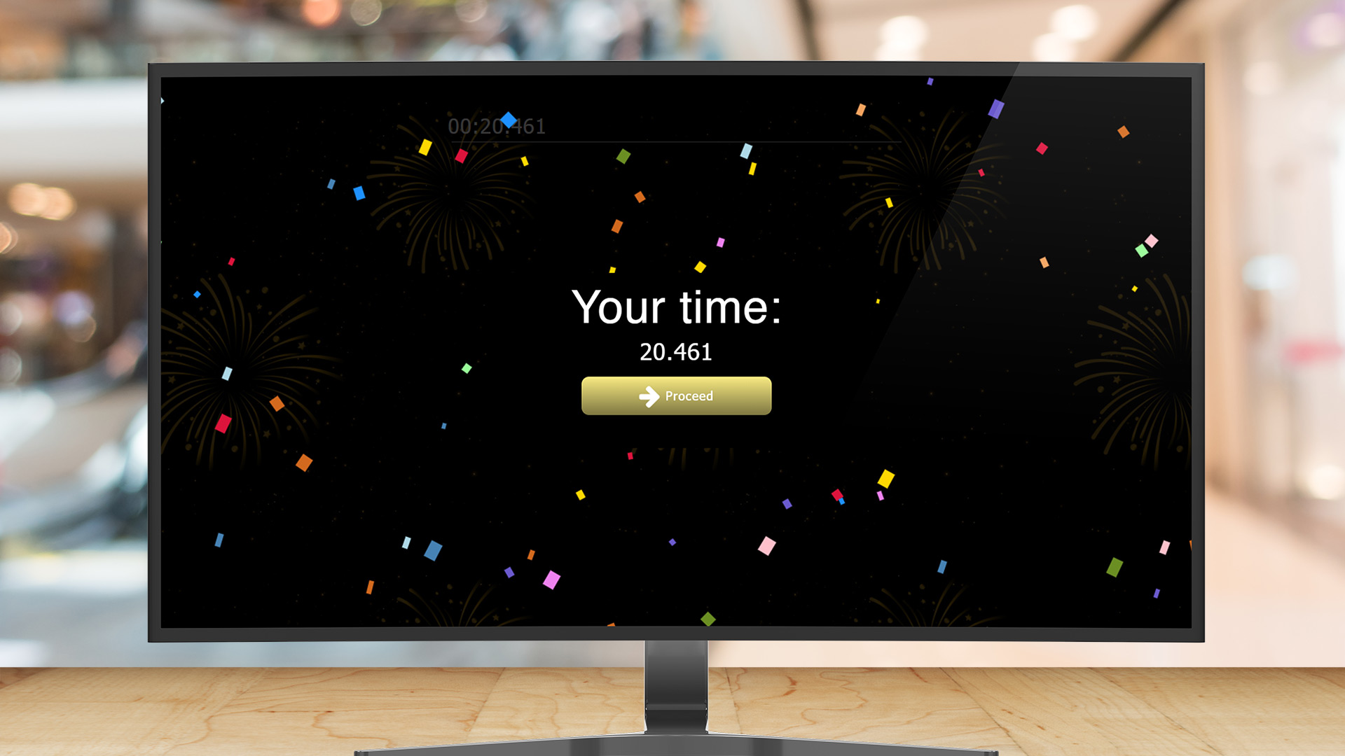 Les visiteurs devaient s'inscrire sur une tablette. Jeu de mémoire pour enfants ou jeu de mémoire pour adultes disponible. Si l’inscription était réussie, leur nom devenait visible sur les grands écrans où se déroulait le jeu de mémoire. Le joueur devait sélectionner son nom pour démarrer le jeu Le joueur devait terminer le jeu de mémoire le plus vite possible pour se retrouver dans le top 5. Le top 5 final à la fin de la journée gagnait un chèque-cadeau pour Shopping 1.