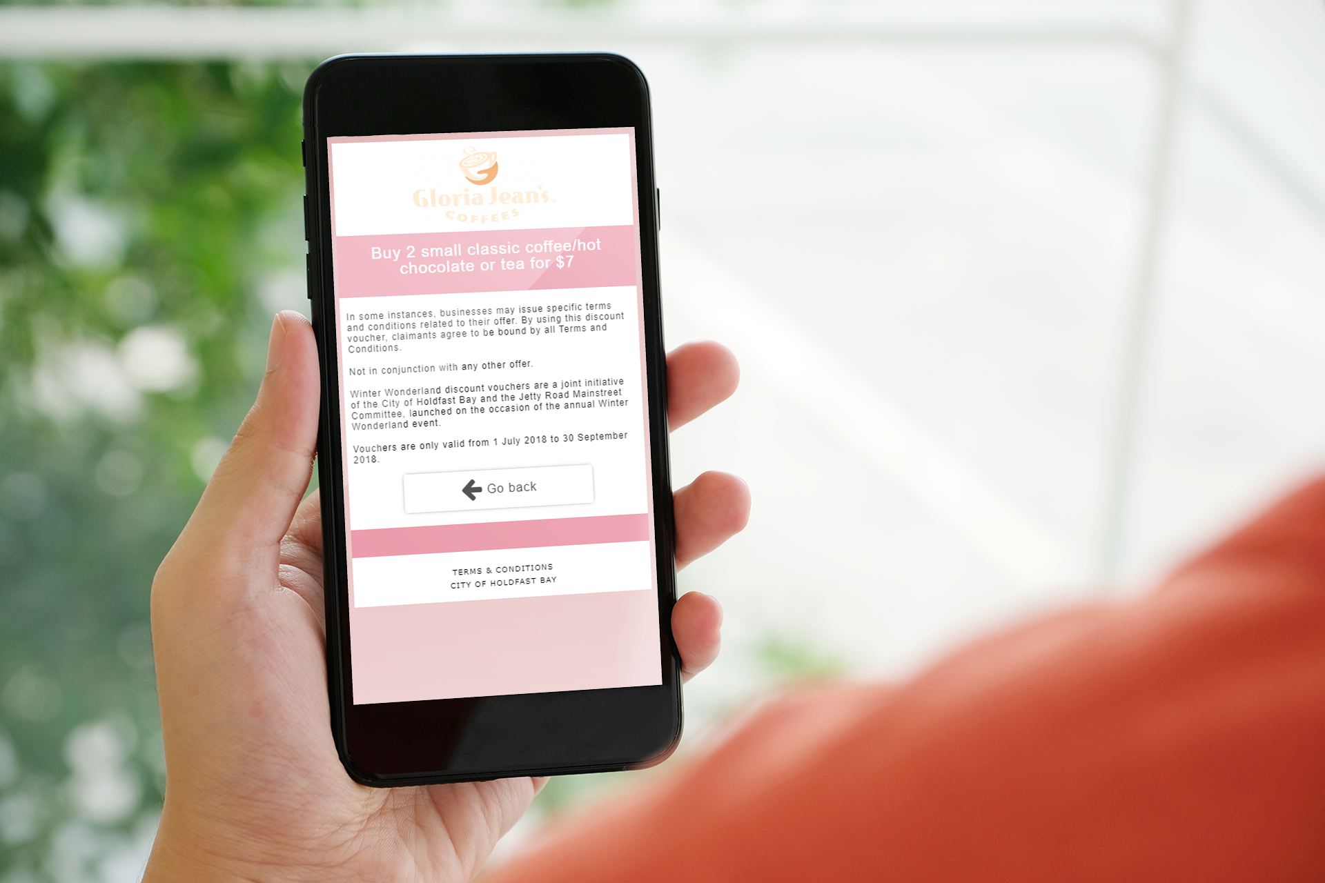 Door de mobiele marketing software van Coupontools te gebruiken, kon de stad Holdfast Bay en het Jetty Road Mainstreet-comité hun Winter Warmers-aanbiedingen presenteren voor winkelen, dineren en entertainment. Het evenement werd gepromoot via Facebook, billboards en flyers. Bezoekers van dit gezamelijke initiatief kunnen de Winter Warmers-coupons ontvangen op Jetty Road, de Facebook-pagina van Glenelg of op de website van de City of Holdfast Bay.