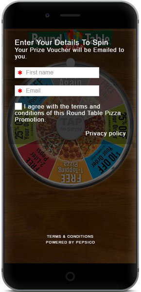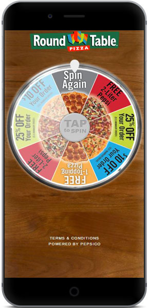PepsiCo s'est associé à la plateforme de marketing mobile Coupontools en novembre 2016 pour l'activation de coupons mobiles via la ludification. La campagne a été créée pour le partenaire commercial de PepsiCo, Round Table Pizza, plus précisément dans un rayon limitrophe aux franchises participantes.