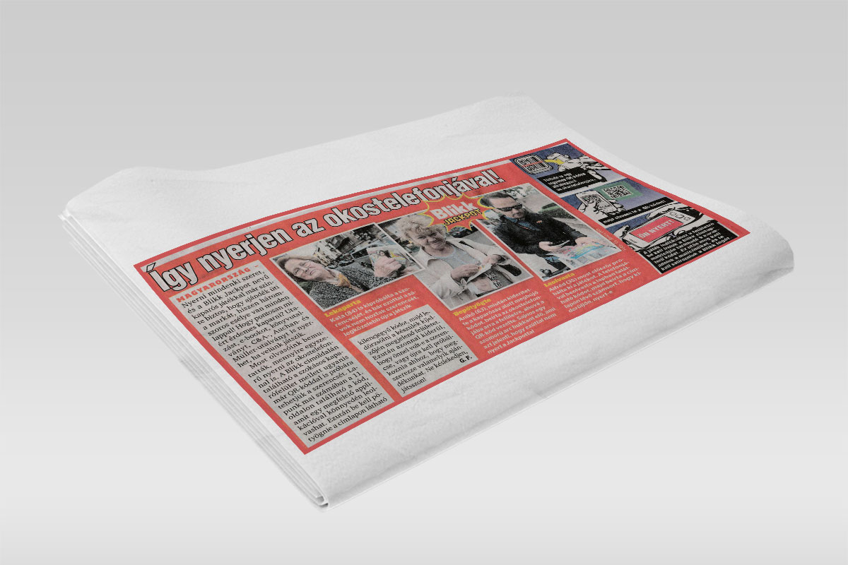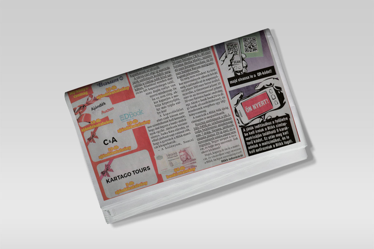 Blikk es el tabloide número uno en Hungría. El periódico combinó una campaña de mercadotecnia fuera de línea en combinación con la solución digital de raspado de Coupontools. Todos los periódicos tenían diariamente un código de promoción único en la página principal. Los consumidores podían escanear el código QR e ingresar el código de promoción único en la ventana emergente. Cada código de promoción único daba acceso a un único cupón de raspado de un solo uso con varias posibilidades de ganar y premios. La campaña de cero recopiló una gran cantidad de datos de inicio de sesión social de los participantes. "La campaña se desarrolló durante varias semanas y tuvo una relación de uso muy alta", dijo Fonai Szabolcs, nuestro representante local de Coupontools en Hungría.