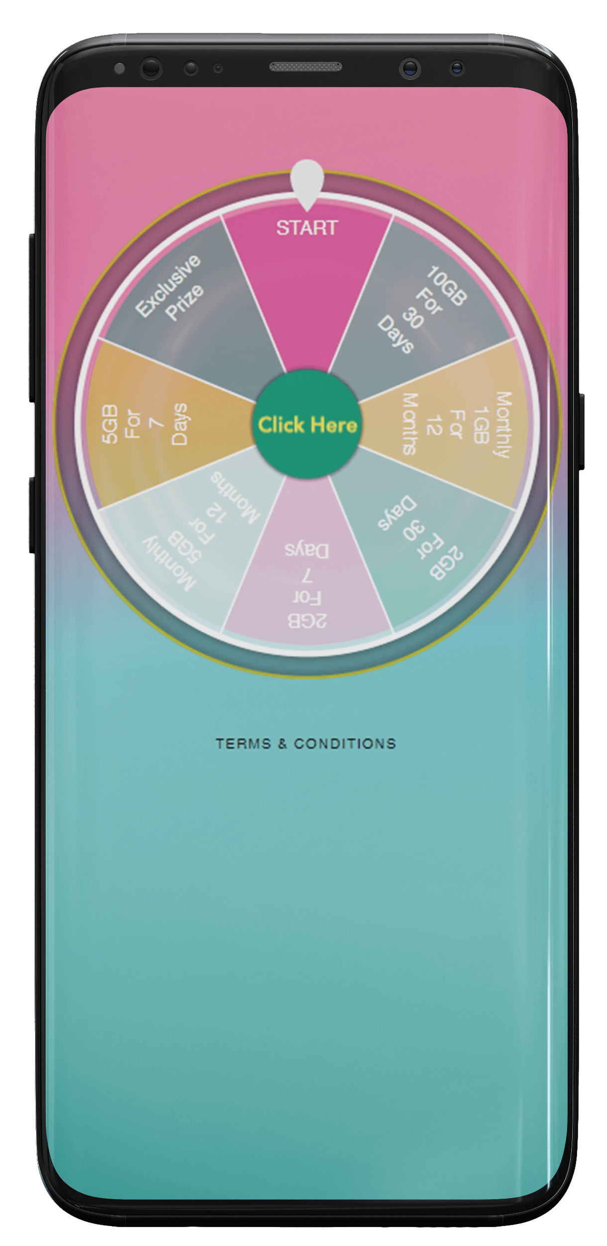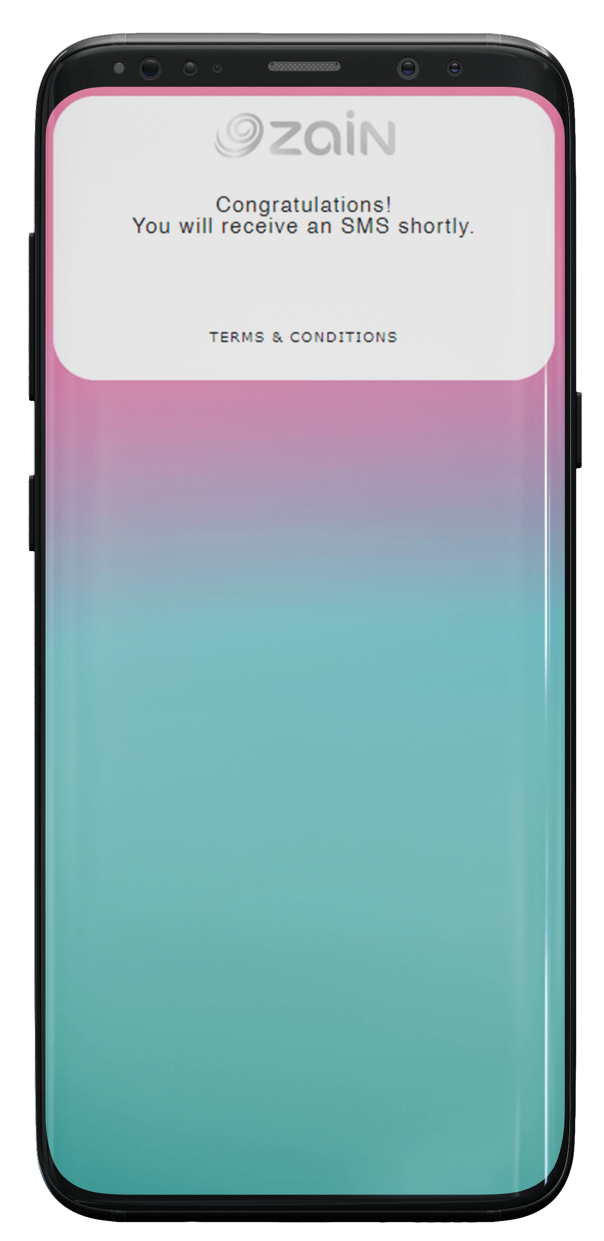 La aplicación nativa de Zain Bahrain permitía a los clientes gestionar sus configuraciones y facturas en sus dispositivos móviles. Con la campaña "Gira y Gana con Zain", los clientes eran recompensados después de cada pago de factura, recarga de prepago o suscripción de datos adicionales de la aplicación de Zain. Después de completar con éxito una transacción válida, los clientes recibían un cupón de juego de Coupontools y se les daba la oportunidad de girar la rueda y ganar 1 de cada 8 premios. Ejemplos de premios disponibles: 180 minutos de llamadas internacionales, 200 minutos de llamadas locales, 10GB de datos durante 30 días, etc.